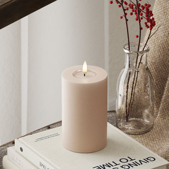 Questo giunto Candela a pilastro Combina il meglio di due mondi: l'illuminazione evocativa delle candele tradizionali e la sicurezza della moderna tecnologia a LED. È perfetto per tutte le case, soprattutto se hai bambini o animali domestici mentre ti diverti senza il rischio di fuoco aperto. Poiché non produce fuliggine o noi, contribuisce anche a un clima interno più sano.