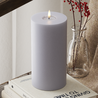 Această frumoasă lumină de bloc LED Albastru prăfuit este creat cu suprafața noastră specială Wetlook ™ care o face să pară o lumânare adevărată. Suprafața arată exact ca partea de sus a unei lumânări care a fost pornită, oferind un sentiment autentic foarte special. Cu o înălțime de 400 cm, se potrivește perfect în majoritatea caselor, unde răspândește confortabil și căldură cu aspectul său natural.