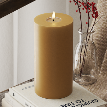 Această lumină elegantă de bloc LED Curry Oferă un efect de „flacără reală” din viața reală, care este la fel de real ca o lumânare reală. Cu o înălțime de 20 cm și un diametru de 10 cm, fiecare lumină de bloc LED este făcută cu grijă din lumânări și rășină, echipată cu o flacără 3D de viață și o acoperire unică de rășină în partea de sus. Această combinație particulară nu numai că creează un sentiment autentic, dar oferă și „aspectul umed” distinctiv care imită lumânările topite perfect.