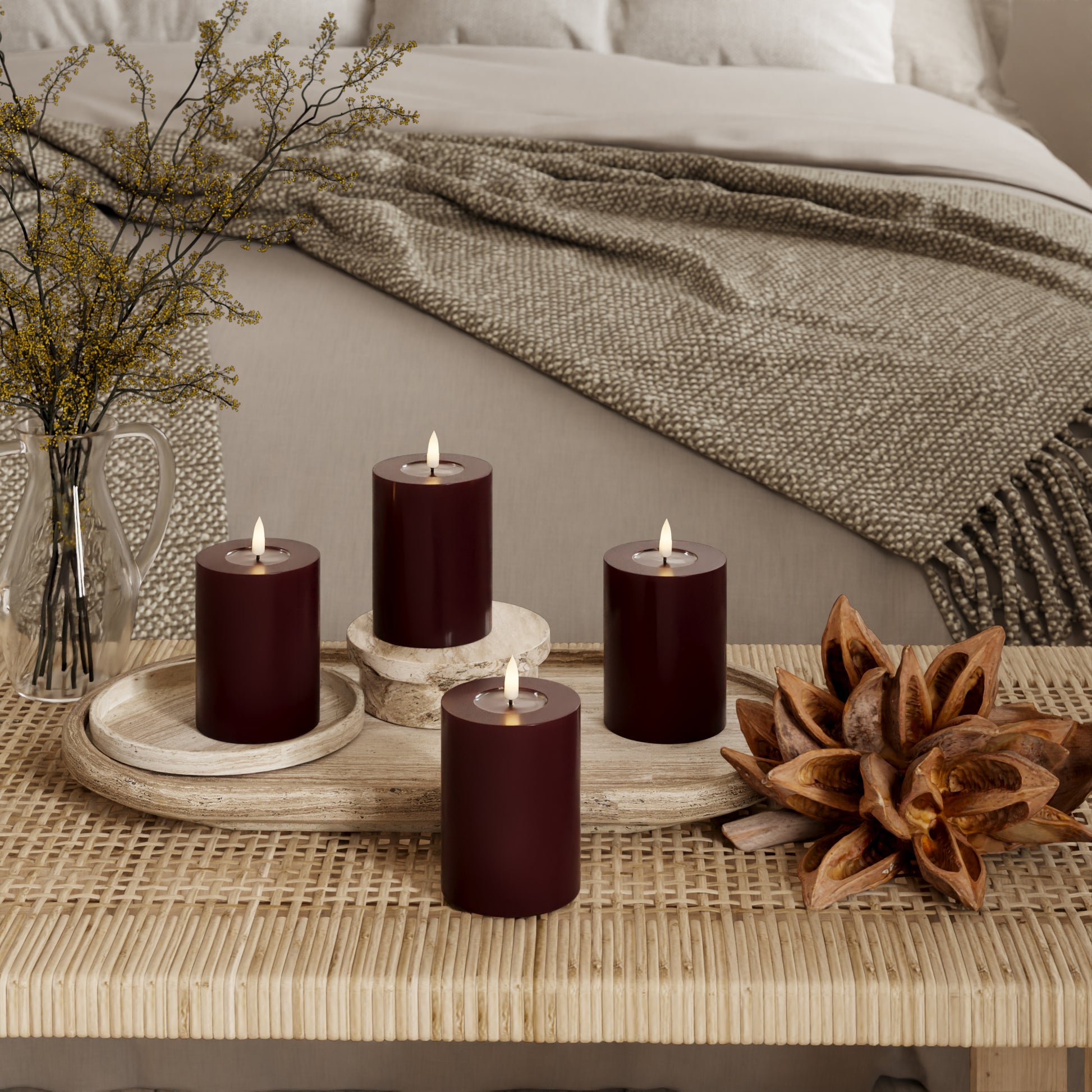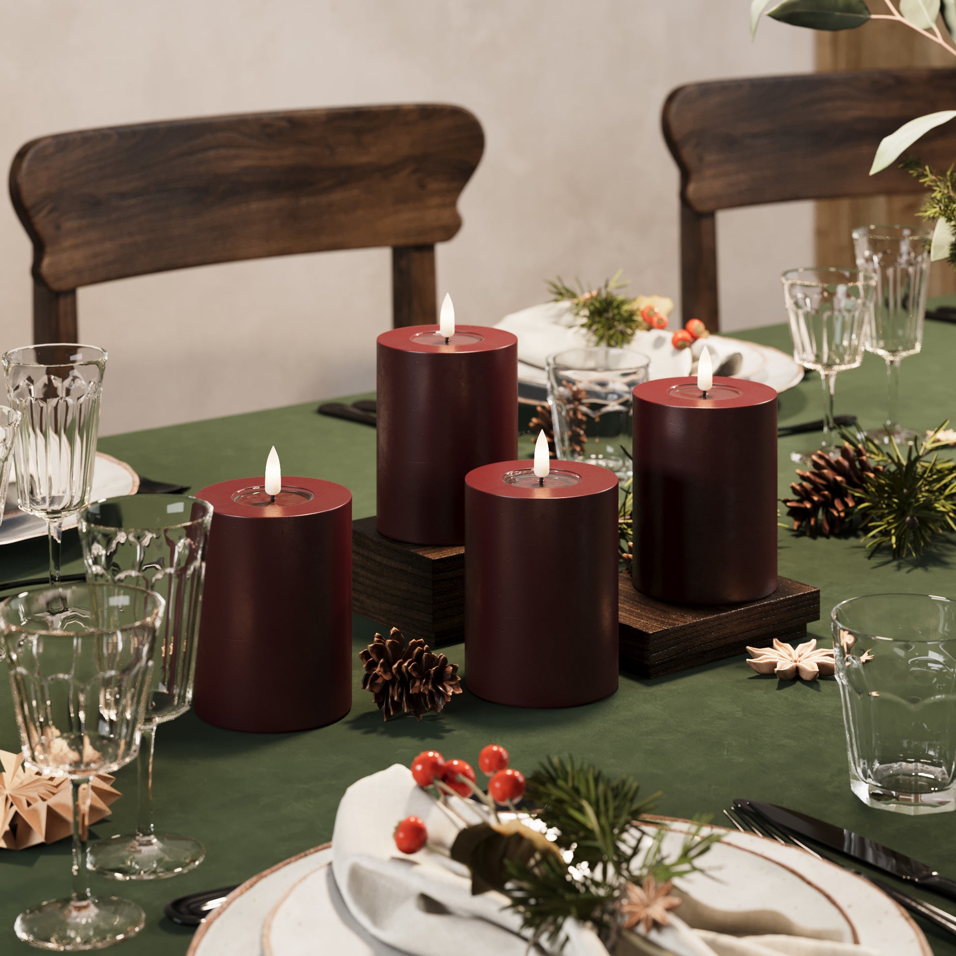 LED Blockljus Ø 7,5 x 10 cm Bourgogne - 4 st
