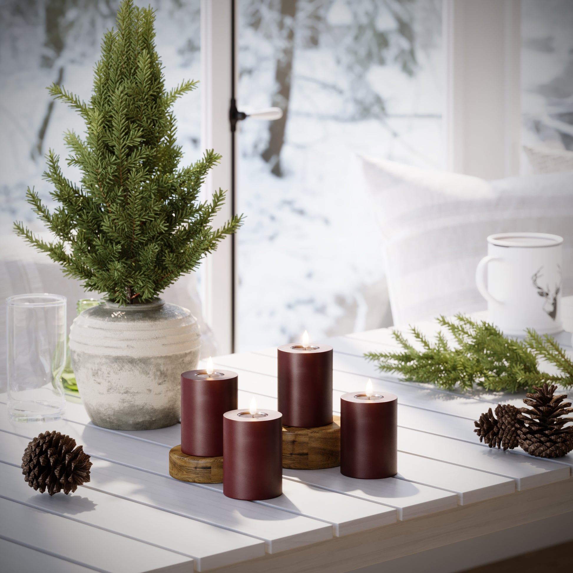 I denne pakke får du LED bloklys i farven Bourgogne i flere størrelser.